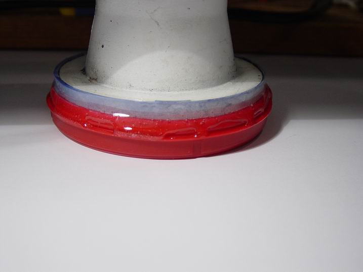 De red cap is gemaakt van de dop van kruidenthee potje,toen ik thee ging zetten de dop verwarmd met 100 graden heet water(flexibel).