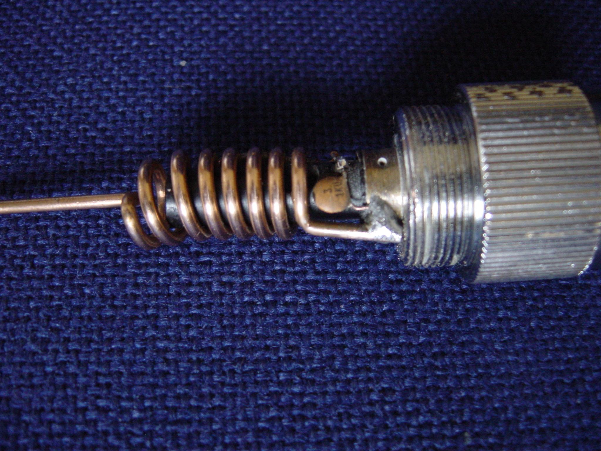 In de basis van deze antenne zit een aanpassings netwerk in de vorm van een spoel met aftakking voor het 50 ohms punt.