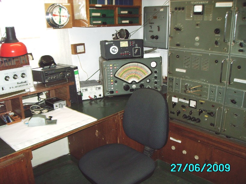 Hier een paar foto's van die zondag op de Cap San Diego in de marconistenhut. Geseind heb ik als DLoMFH echter op een gewone moderne ICOM, de oude scheepsapparatuur moet natuurlijk ontzien worden :wink: De ant was een LW ca. 40 m up. Geseind op de ETM 9 C, die je er ook ziet staan.