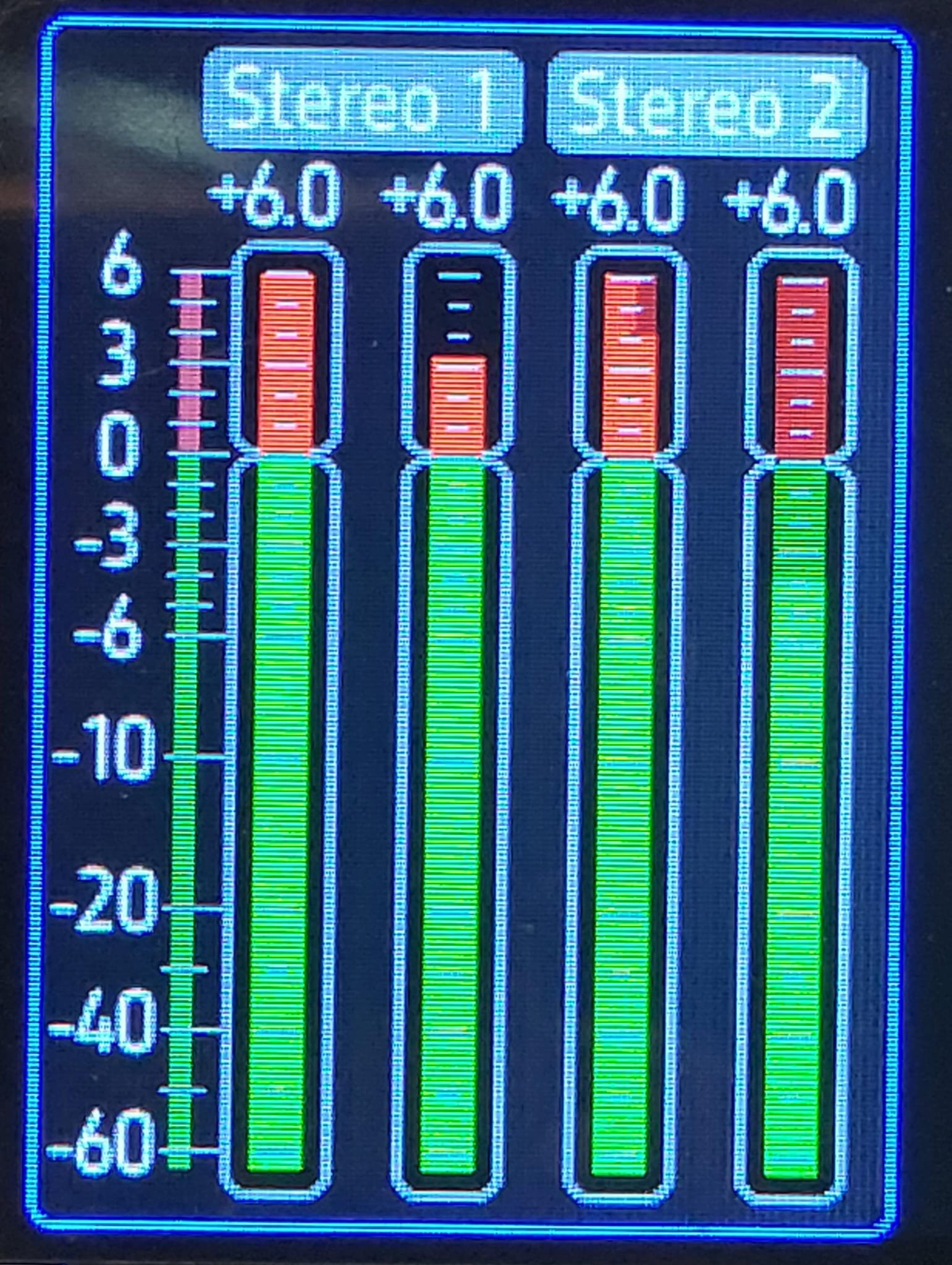 Het display wel, dit worden ongeveer de PPM meters die de levels van de inputs gaan tonen: