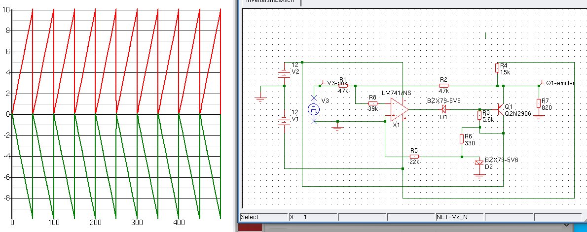 Je geloofd het nooit, de dikke pnp tor van de -27V ligt eruit. Nu is de maat vol. Dat van die zaagtand gaat werken. Is het niet goedschiks dan kwaadschiks maar dat inverteren leek gelukt en anders lukt me dat desnoods op een los printje zeker.